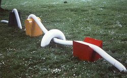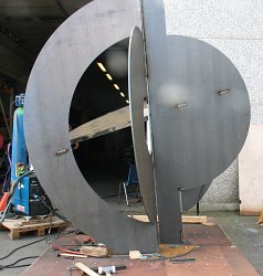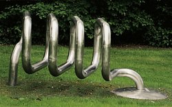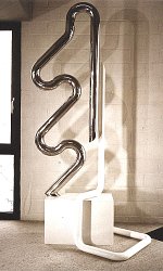 Devant l'œuvre de Marie-Paule HAAR, on ne peut qu'être passionné par les matériaux et par la forme. Ces deux éléments sont intégrés à un point tel, qu'ils nous donnent toujours l'impression d'une masse homogène mais mouvante. Car s'il y a des pièces coulées, d'autres sont basées sur l'assemblage d'éléments industriels, pour aboutir à une ligne fluide et impeccable qui nous ferait oublier le matériau d'origine. Ces formes sont inattendues, imprévisibles, elles font pénétrer l'espace par la lumière et leur présence séduit par une dignité frappante. Cette dernière se repose sans doute, sur une honnêteté technique fondamentale, une approche directe sans trucages. Les volumes réorganisent les espaces, attrapent et renvoient la lumière. Parfois ils deviennent plus agressifs ou étincellent tel un défi à l'air. Cette aventure, c'est la conquête de l'espace. Lyrisme et structure vont de pair et leurs sinuosités se terminent en cube. L'œuvre de Marie-Paule HAAR répond aussi bien aux besoins de l'architecture qu'à ceux de l'espace libre, un dialogue s'ensuit qui peut être un jeu, mais un jeu grave, souple mais contrôlé.