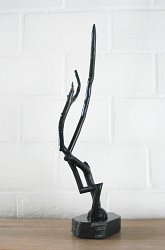 En optant pour le plomb, Marie-Paule Haar décidait d'une mue, enfilait désormais d'une peau dont le grain imprévisible, les ravines infimes, les modulations inattendues et l'opacité confirment une option neuve. Plutôt que de filtrer des lumières en des matières de synthèse, de refléter rayons solaires ou clartés luminaires, de déformer images ravies à l'environnement immédiat en de métalliques miroirs, ses sculptures grises, monochromes bien que jamais uniformes, privilégient dorénavant le mystère, le secret, l'émotion, les subtilités rétiniennes et préfère le flirt des ondes lumineuses.