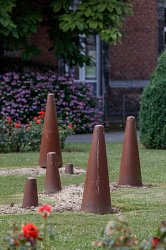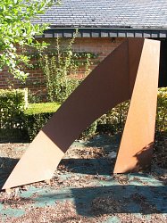 Nonobstant ce recouvrement dont on dit qu'il est en chape, et paradoxalement donc, l'œuvre dit son intimité. Le dedans prend le dehors. Elle quitte sa froideur mais point une certaine rigueur. Subsiste principalement cette de la figure géométrique la plus simple, la plus pure : le carré. Soit-il décomposé voire découpé. Car il ne s'agit pas de s'égarer même si on se permet des libertés, si sentiment et lyrisme osent s'avouer.