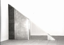 En optant pour le plomb, Marie-Paule Haar décidait d'une mue, enfilait désormais d'une peau dont le grain imprévisible, les ravines infimes, les modulations inattendues et l'opacité confirment une option neuve. Plutôt que de filtrer des lumières en des matières de synthèse, de refléter rayons solaires ou clartés luminaires, de déformer images ravies à l'environnement immédiat en de métalliques miroirs, ses sculptures grises, monochromes bien que jamais uniformes, privilégient dorénavant le mystère, le secret, l'émotion, les subtilités rétiniennes et préfère le flirt des ondes lumineuses.